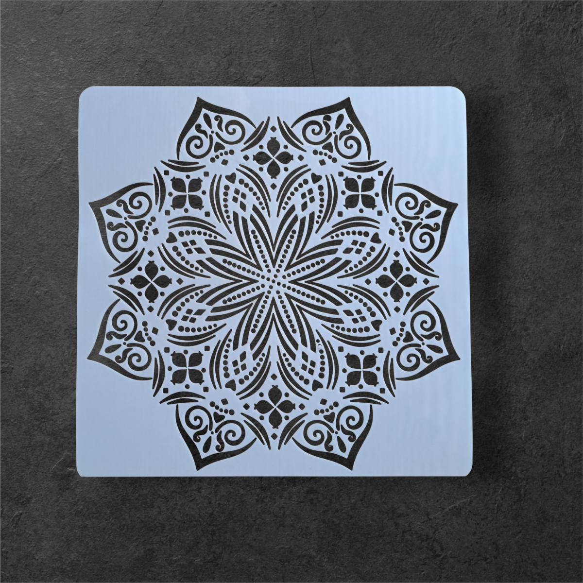 Izsmalcināts un detalizēts trafarets, kas radīts tiem, kuri novērtē skaistumu un iekšējo harmoniju. Mandalas zīmējums nav tikai attēls, bet gan līdzsvara, integritātes un meditatīva miera simbols.