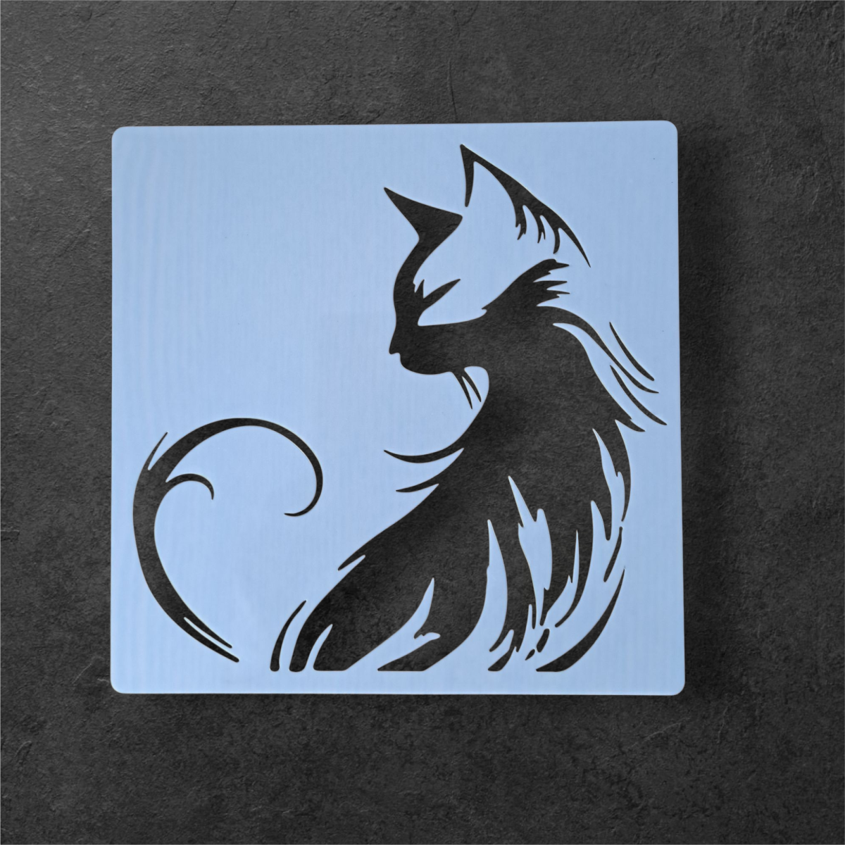 Šis elegants trafarets ar kaķi ir lieliski piemērots kaķu mīļotājiem un tiem, kas vēlas piešķirt saviem projektiem mistikas un grācijas pieskārienu. Kaķa siluets, kas atgādina pasakainu tēlu, ienesīs rotaļīgumu un šarmu jebkurā interjerā vai radīšanas procesā.
